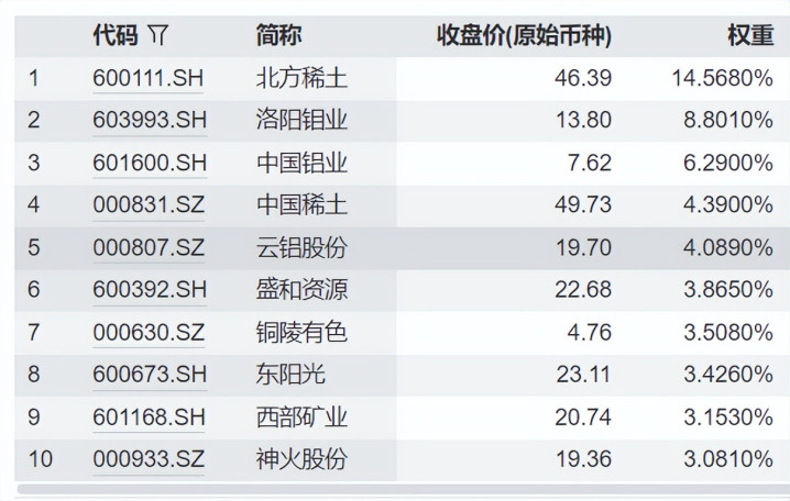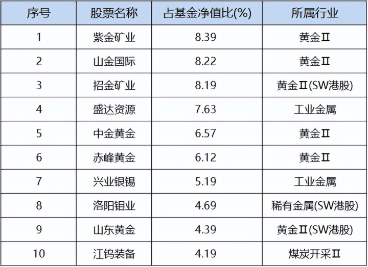 从前10大个股来看,覆盖了北方稀土、洛阳钼业、中国铝业等细分行业龙头个股。可以较好地分享行业发展红利。