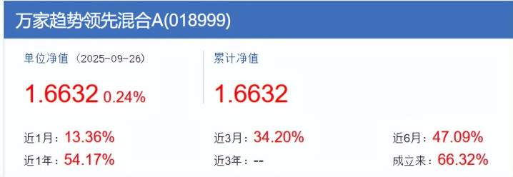 比如,主要投资于有色金属方向的万家趋势领先(A类:018999;C类:019000)产品自成立以来取得了66.32%的较好收益。
