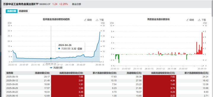 与此同时,工业有色ETF(560860)近期获得了市场资金的大幅加仓,规模由年初的3.4亿元左右,快速增长超过30亿元。