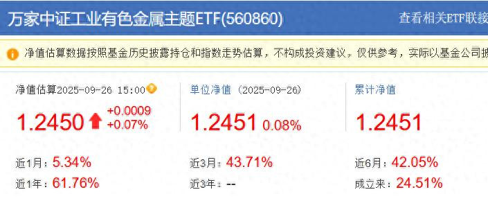 工业有色ETF(560860)今年以来收益高达57.21%,在同类产品中居于前列。